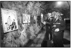 图为矿工们正驻足观看巷道内的家庭摄影写真“沙龙”展。(通讯员 胡明军 摄)