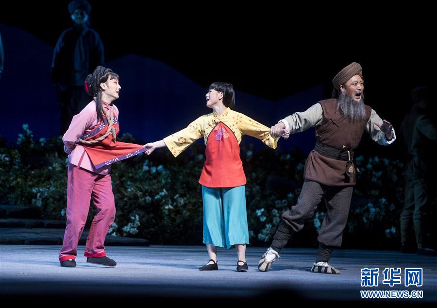 7月18日,演员杨俊(左)在《党的女儿》中饰演田玉梅。 当日,改编自同名歌剧的现代黄梅戏《党的女儿》在武汉首演。该歌剧由湖北省戏曲艺术剧院联袂鄂皖两省戏剧名家通力打造,包括国家一级作曲徐志远、安徽省黄梅戏剧院主胡演奏家李万昌、国家一级编剧宋西庭、国家一级导演邓德森等。 新华社记者 肖艺九 摄