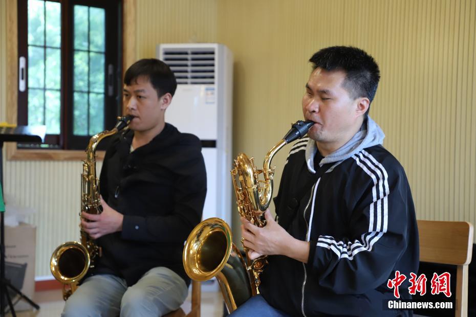 9月18日,在贵州省惠水县的贵州盛华职业学院内,由12名视障或者盲人学生组成的贵州省首支盲人乐团排练,队员中年纪最小的14岁,年纪最大的35岁,他们虽然眼前黑暗,但勇于用音乐寻找光明。中新社记者 瞿宏伦 摄