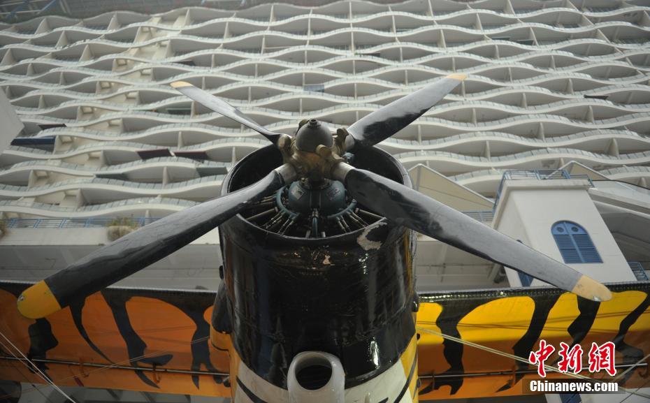 10月21日,四川成都,博物馆门口的运5飞机已吊装到位。当日,四川首家以航空为主题的民办航空博物馆进展顺利,该博物馆主要以航空科普与文化教育、航空人才实践培育等为主要用途。 中新社记者 刘忠俊 摄