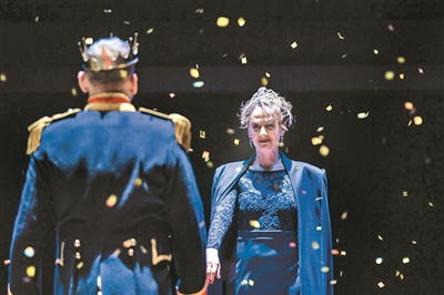 这版复排并没有着意加大麦克白夫人“恶”的影响力。她固然推动了丈夫,但这也是两人在婚姻中结下的感情、默契和利益同盟,让他们为了一致的目标奋斗。就像《舞台报》说的那样,“中年夫妇的爱变黑了,就像血干了一样”。