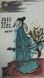 当然,小朋友们对于杜甫、李白、武则天这三位历史名人的形象,和其诗词文赋中描绘的场景也是表现出了极强的创造力。并且在孩子们的笔下,杜甫“忧国忧民”的苦难诗人形象,也被赋予了一种“萌萌哒”的感觉。譬如8岁小朋友朱润的作品《旅夜书怀》,本是杜甫抒发自己漂泊在天地之间的孤寂之感,但朱润用色彩画出了别有的一番风韵。