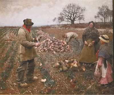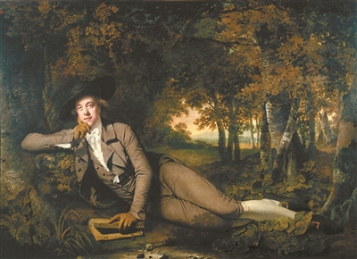 这样的思路不失清晰,但如果希望通过本次展览把握英国风景画最为精华和独特的部分,我们或许需要换一个角度来看:英国风景画的“英国性”体现在哪儿,又是如何体现的?约瑟夫·赖特的《布鲁克·布思比爵士画像》中那位躺在草地上手握书本陷入沉思的绅士形象,托马斯·庚斯博罗《池塘边赶牛的少年》中宁静安谧的田园风光,托马斯·格尔丁《诺森伯兰郡的巴姆伯格城堡》中颓败的废墟景观,还有康斯太勃尔《戴德姆的水闸和磨坊》里表现的作坊生产活动等,这些看似异质的题材与风格如何共同建构起关于英国式“风景”的视觉表达?