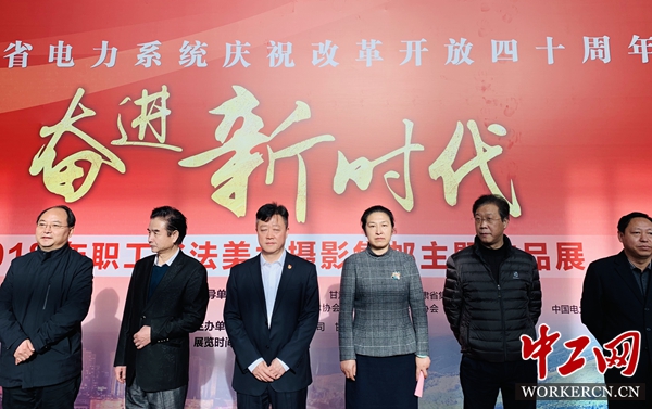 甘肃省总工会吴俏燕在开幕式上表示,近年来,甘肃省电力公司工会始终坚持充分调动和发挥工人阶级主力军作用,广泛开展“当好主人翁、建功新时代”主题活动,不断深化“中国梦?劳动美”主题教育,创新构建了“网状立体式”职工文化工作格局,打造了“健康和谐”“卓越创新”和“电靓文化”三张职工文化特色名片,形成了新时代健康文明、昂扬向上、全员参与的职工文化工作品牌。希望国网甘肃省电力公司和甘肃省电力工会不断挖掘埋藏在职工之中的典型事迹和不凡业绩,充分运用诗书画和影视屏等手段和途径,讲好职工故事,引导职工文艺爱好者创作出更多思想精深、艺术精湛、定位精准、制作精良的职工文艺作品,打造健康文明、昂扬向上、全员参与的职工文化。
