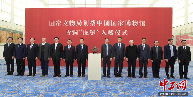 刘玉珠在入藏仪式上表示,流失海外的中国文物是我国文化遗产的重要组成部分,其流散回归历程与国家治乱、民族兴衰密切相关,寄托着中国人民深厚的历史与文化情感。近年来,国家文物局积极开展流失文物追索返还工作,促成多批流失文物回归祖国,青铜“虎鎣”的回归正是其中具有代表性的范例,彰显了中国政府保护文化遗产的坚定信念与负责态度,也显示了我国流失文物追索返还工作获得了社会各界广泛的理解与支持。