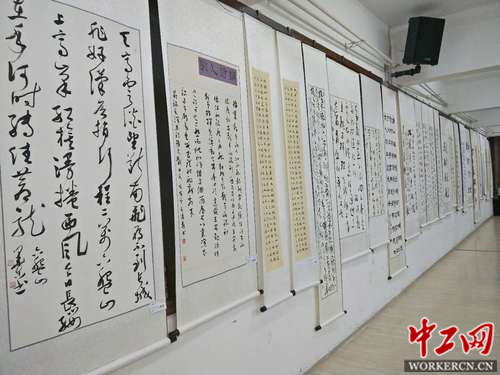 中工网讯(工人日报-中工网记者丛民)12月22日上午,由山东省济南市青年书法家协会等单位共同举办的纪念毛泽东主席诞辰125周年毛泽东诗词书法展在济南市明湖小学隆重开展。本次共展出书法作品125幅,毛体和行、草、隶等各种书体将毛泽东诗词演绎出新的时代风彩