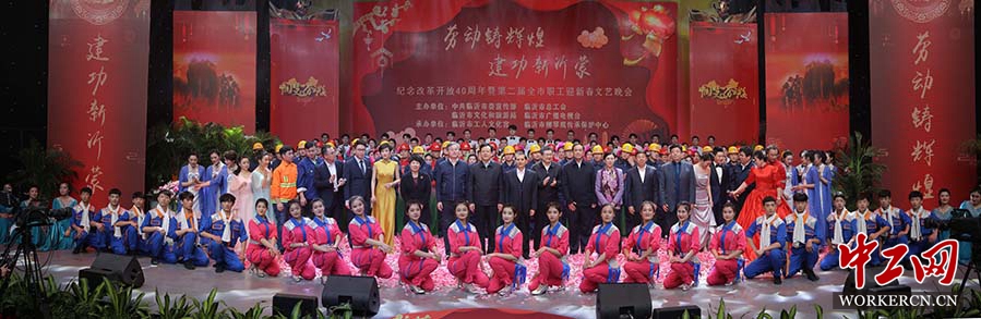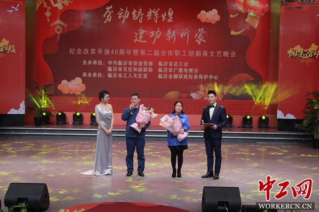 中工网讯(中工网记者丛民 通讯员惠光敏) 1月10日,由山东省临沂市委宣传部、市总工会、市文化和旅游局等单位主办的“劳动铸辉煌 建功新沂蒙”纪念改革开放40周年暨第二届全市职工迎新春文艺晚会举行。