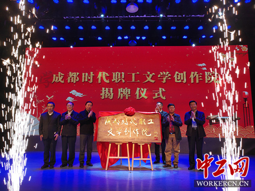中工网讯(记者 李娜)3月20日下午,成都劳动人民文化宫梦想剧场内,来自成都市工会系统、各产业战线的两百多位职工作家们欢聚一堂,这些平时在机床轰鸣中、在焊花飞溅里、在建筑工地上、在荒山野岭外,利用工作间隙辛勤耕耘、潜心创作的人们,作为活跃在工厂、企业、矿山的上万名职工作家和职工文学爱好者们的代表,亲眼见证了成都时代职工文学创作院的成立。