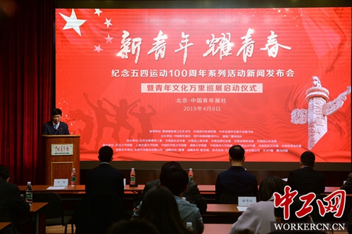 中工网4月8日电(记者吴凡 北梦原) 今天,“新青年 耀青春”纪念五四运动100周年系列活动新闻发布会暨青年文化万里巡展启动仪式在北京举行。未来一个月,该系列活动的重点内容——“东风”五四百年青年文化万里巡展公益活动将在全国多地穿梭进行。