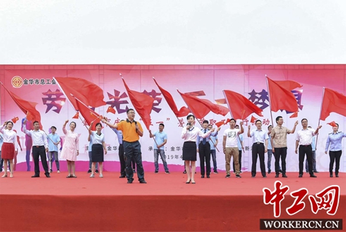 据了解,此次庆祝五一劳动节活动,金华市总工会职工艺术团将今年来扎根本土文化新创作的优秀文艺作品统统搬上舞台,一段《刀木春秋》舞将金华东阳木雕工匠的精湛技艺活灵活现的展现在舞台上;一幕《平凡的一天》剧以小见大把金华公交劳模的爱岗敬业演绎得有声有色;一首《五月最美的风景》词把金华城市面貌的翻天覆地变化特别是金华创建全国文明城市期间展现出的信义和美、拼搏实干、共建图强的金华精神娓娓道来……这些源自基层,取材于现实生活的优秀节目一经展演,就深受职工群众们的欢迎。为深入贯彻落实习近平总书记的重要讲话精神,金华市总工会职工艺术团正在把全市广大职工积极投身经济建设、深化改革主战场奋发作为的劳模精神,在创新创业、科技攻关最前沿勇攀高峰的创新精神,在社会建设、服务群众第一线的无私奉献精神,以“乘风破浪会有时”的豪情壮志谱写成一曲曲壮美动人的劳动者之歌。