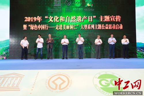 中工网讯(记者 王冬梅)6月8日是我国第三个“文化和自然遗产日”,2019“文化和自然遗产日”全国主题宣传活动暨绿色中国行——走进美丽铜仁大型系列主题公益活动在世界自然遗产地贵州省铜仁市举行。