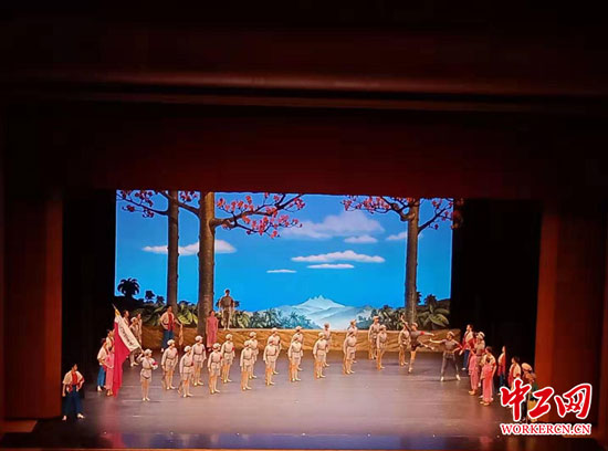 中工网讯(记者 张舒雯)9月16日,2019年国家网络安全宣传周祝贺演出——中央芭蕾舞团经典芭蕾舞剧《红色娘子军》在天津大礼堂拉开序幕。《红色娘子军》的故事发生在20世纪30年代的中国海南岛,舞剧讲述了从恶霸南霸天府中逃出来的丫鬟琼花,在红军党代表洪常青以及战友们的帮助下,经过血与火的战斗考验,从一名苦大仇深的乡下丫鬟,逐渐转变成长为一名坚定的革命战士的过程,生动描绘了一幅中国妇女坚强不屈革命精神的壮美图卷。《红色娘子军》自面世以来,其艺术魅力、创造力、生命力、感染力激励了无数人,本次演出更是带领着观众们重温了“中国娘子军”的风采。