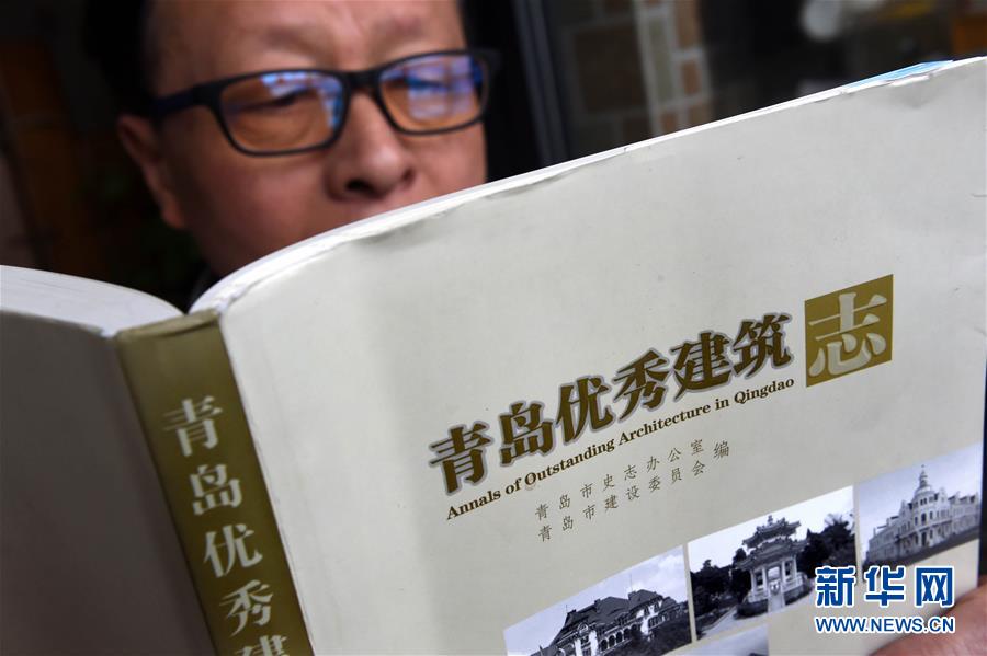 纪周统在制作贝壳建筑作品前查阅资料(4月12日摄)。新华社记者 李紫恒 摄
