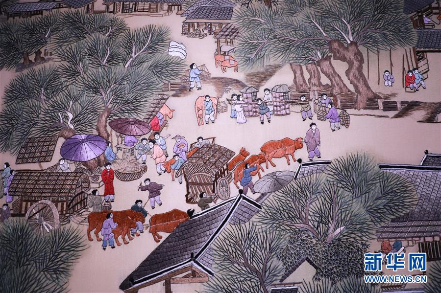 河北石家庄:刺绣艺人绣出8米长《清明上河图》