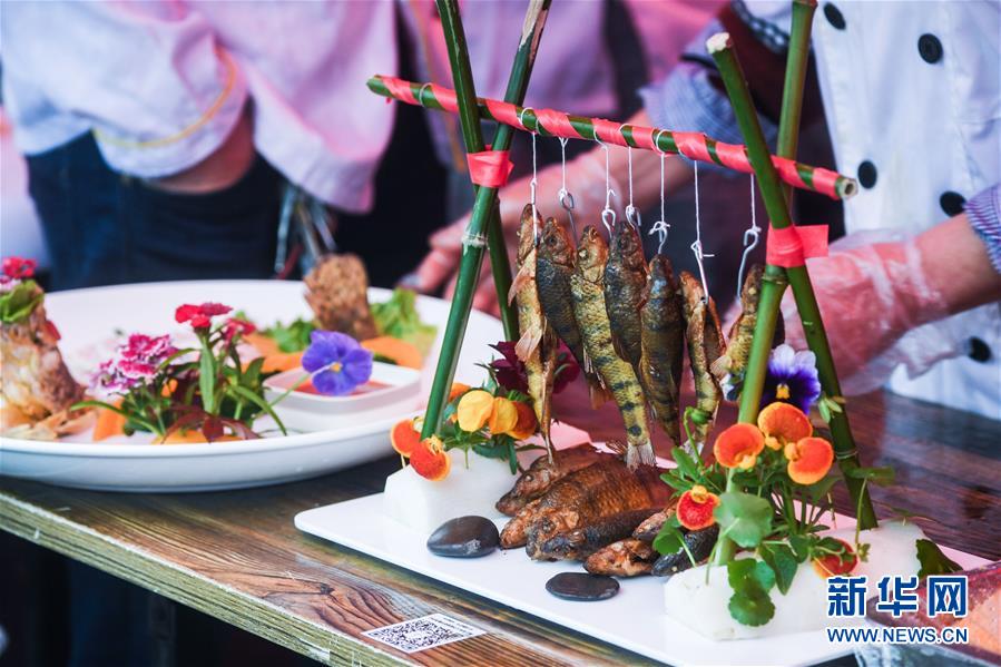 这是刚烹制好的特色菜品“吊烤溪石斑”(4月13日摄)。