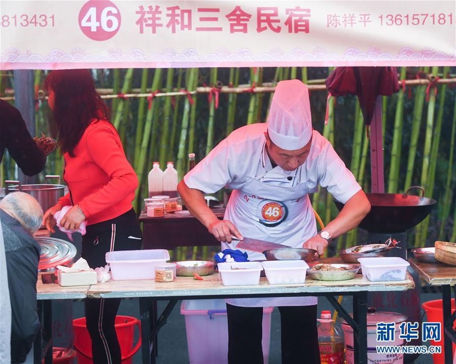 4月13日,一名农家乐厨师正在烹制特色菜。新华社记者徐昱摄