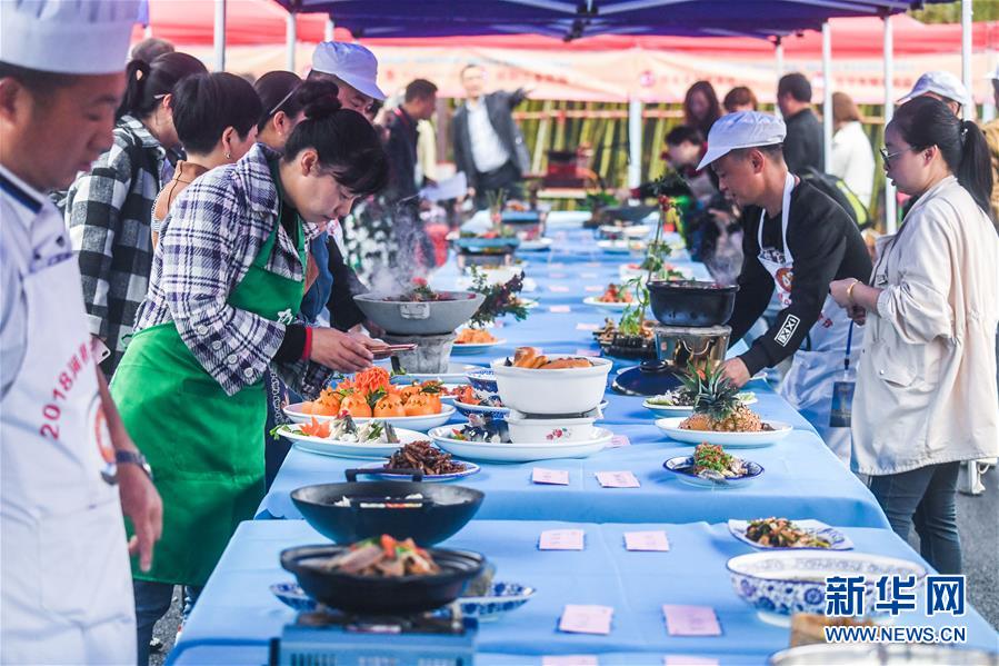 4月13日,烹制好的特色菜正在进行展示。新华社记者徐昱摄
