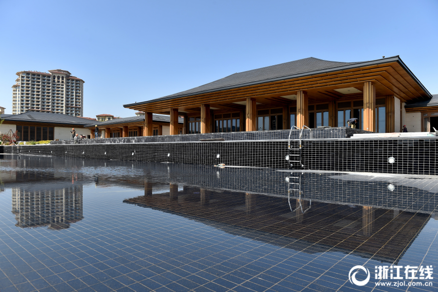 被誉为“舟山最美会客厅”的国际海岛旅游大会永久会址位于朱家尖,今年8月将开出海上丝绸之路酒店。这家投资10亿元的主题酒店,客房融入了“海上丝绸之路”沿途的中国江南、东南亚、中东、地中海四种建筑风格和异域风情,今年9月将承接国际油商大会,首批员工正加紧培训。(浙江在线记者 潘海松 摄)