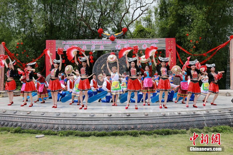 4月18日,是壮族传统节日“三月三”,广西钦州市在钦北区贵台镇八寨原乡举办“歌飞三月三·情满八寨沟”壮乡嘉年华系列活动,背篓绣球、歌舞表演、板鞋竞速、对山歌、壮族婚礼、狮龙表演等项目吸引中外友人参加互动,载歌载舞欢度“三月三”。曾开宏 摄
