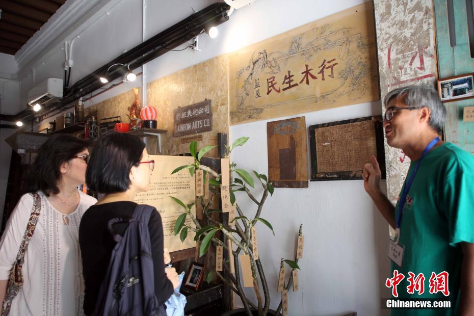 4月19日,导赏员在介绍“民生木行”展览。位于香港湾仔石水渠街的“香港故事馆”以“从民间出发·汇多元文化”为宗旨,展出湾仔历史民间的生活用品,并透过多元及互动活动和展览,引起公众人士对地区文化保育的关注。中新社记者 洪少葵 摄