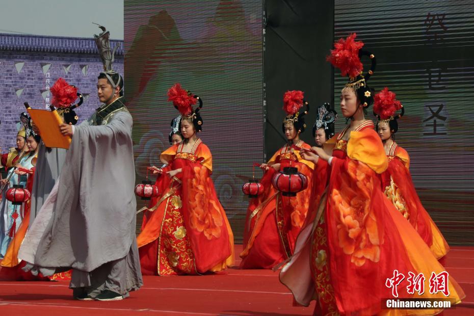 4月20日,由中国公共关系协会、陕西省旅游发展委员会、渭南市人民政府主办的“2018 ‘一带一路’年度汉字发布仪式”,在文字始祖“仓颉”的故乡——“中国字都”陕西白水举行。2018“一带一路”年度汉字发布仪式结合白水传承千年的谷雨祭仓圣传统文化礼仪,创新表达优秀传统文化内涵。发布仪式创新融合运用国际传播喜闻乐见的舞台剧,以及文化的重要表现形式——国画,来全面诠释2018“一带一路”年度汉字的精神和底蕴。在汉字发布的高潮部分,由25位专业舞蹈演员现场推动汉字“魔方”组成“迷宫”,最后用汉字“魔方”拼成“新”字。舞台剧《汉字之美》运用优美舞蹈和迷宫魔方等形式,生动展现了中华汉字文化的博大精深。当天下午,2018新时代“五个一”研学精品发布活动举行,通过发布一个汉字、一套教材、一部舞台剧、一套游戏和一条研学精典旅游线路等“五个一”研学精品,将游学和研学有机结合。图为谷雨祭仓圣活动现场。 中新社记者 任海霞 摄