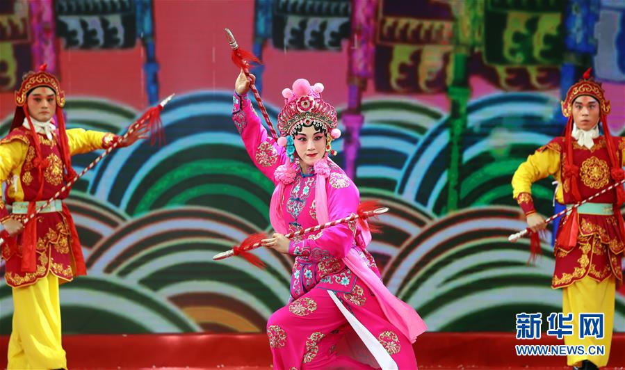 4月22日,江苏省演艺集团京剧院演员杨燕在表演京剧《虹桥赠珠》。