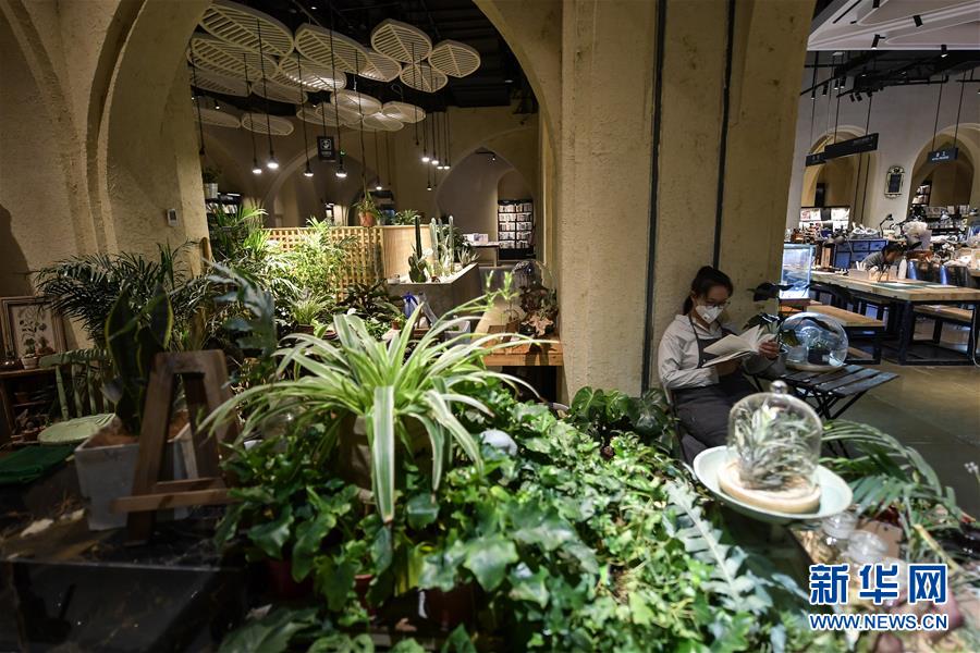4月19日,一名读者在西宁市几何书店内阅读书籍。看书、画唐卡、磨青稞、做木工、打银饰……走进青海西宁的几何书店,穿过一道道灰白色的石拱门,读者或在长椅上安静阅读,或在画师指导下画一幅唐卡,或握起木槌和手工凿,做一次木工……在书店中体验别样的文化和生活,感受舒适阅读。新华社记者吴刚摄