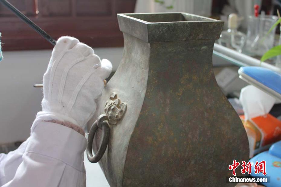 此外,由于土壤中有害因素的侵蚀,许多青铜器一出土就有残缺、裂隙、变形、瘤状物、通体矿化等病害,为了使其不再受侵害,在尊重文物原貌的基础上,对文物进行“修身”“正骨”,精细程度丝毫不亚于外科手术。 徐雪 摄