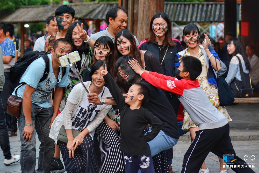游客在寨子里拍照留念。新华网发(许建梅摄)