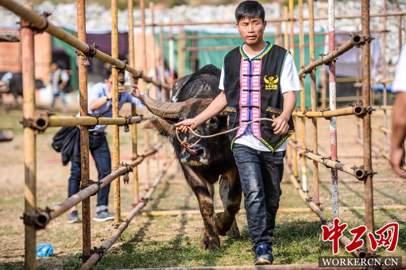 当天,独具云贵民族文化元素的“东方式斗牛”及新版民族歌舞首次登台亮相。斗牛是云贵少数民族的传统文化。所谓斗牛,以水牛相斗,并非戏牛取乐,而是以斗牛的方式,展示苗家敬牛爱牛拜牛的特性。中工网讯(工人日报-中工网记者 吴凡 通讯员 达明 摄影报道 )