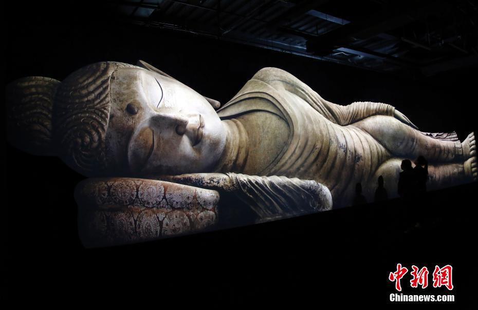 裸眼3D技术呈现的莫高窟第158窟(盛唐)中的“涅槃卧佛”。汤彦俊 摄