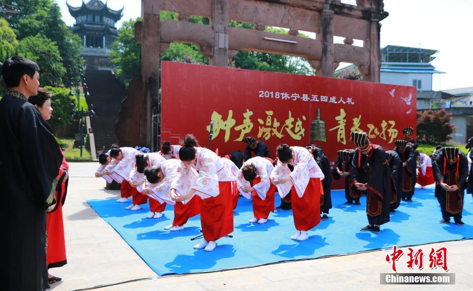 安徽休宁300中学生集体行汉式“成人礼”