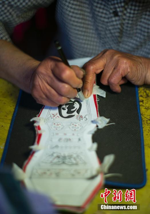 被当地民间称为“唐灯”的针刺无骨花灯,其工艺源于唐朝,整灯不用一根骨架,只用大小不等、形状各异的纸片黏贴接合,再覆盖用绣花针刺出各种花纹图案的纸片,经十三道工序精细制作而成。中新社记者 侯宇 摄
