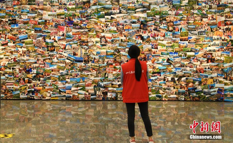5月10日,《感恩·奋进——“5·12”汶川特大地震10周年重建成就主题摄影展》在成都开展,展览还设立香港、澳门特别行政区援建四川展厅。展览通过新旧对比等形式,反映了震区10年来恢复重建的显著成果。图为照片墙吸引参观者。 中新社记者 刘忠俊 摄
