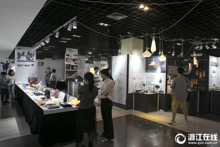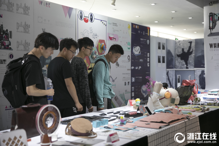 5月14日,浙江图书馆。浙江理工大学艺术与设计学院2018届本科生毕业设计作品展在此举行。这场展览以“设计·生活·艺术”为主题,涵盖了视觉传达设计、环境设计、工业设计、产品设计等专业方向,学生的创意作品诠释了艺术源于生活高于生活又服务于生活的内涵。(浙江在线记者 杨朝波 阮西内 摄)
