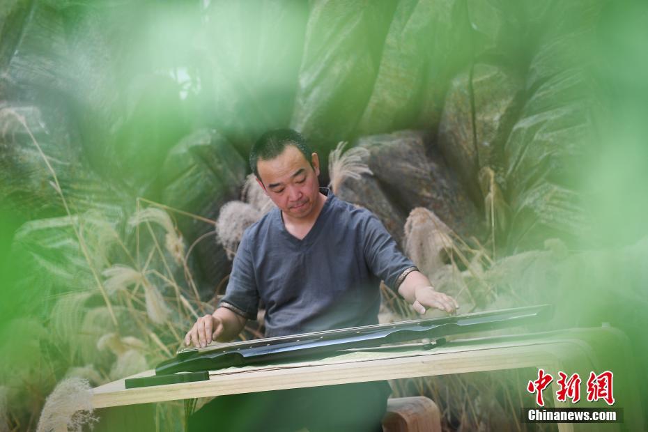 5月14日,山西太原小窑头村,斫琴师张浩弹奏古琴。古琴是中国一种古老的弹拨弦鸣乐器,距今已有4000多年历史,所谓古法斫琴,是指沿用唐代斫琴方法纯手工制作的技艺,每张琴经过选料、造型、裹夏布、打磨、上弦等将近200多道传统工序,历时两年多方能完成。中新社记者 武俊杰 摄