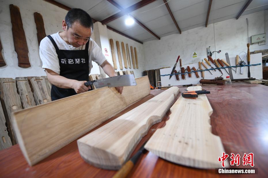 斫琴师张浩手持锉刀工具潜心斫制古琴。中新社记者 武俊杰 摄