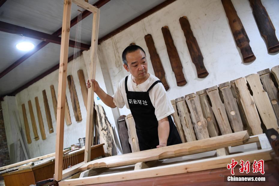 斫琴师张浩在古琴上裹夏布刷漆。中新社记者 武俊杰 摄