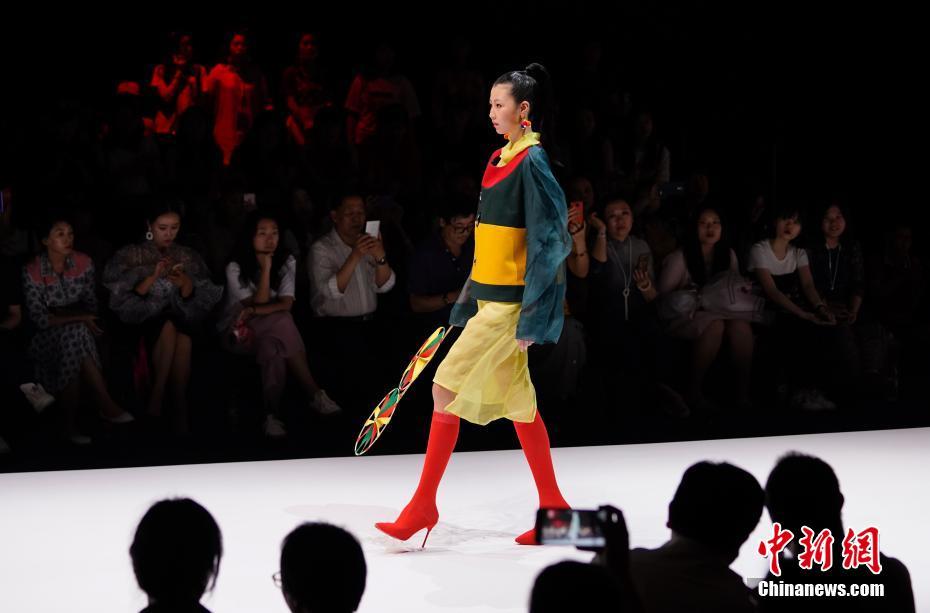 5月15日,中国国际大学生时装周在北京举行。北京联合大学毕业生专场作品发布会带来“京·韵”系列作品。学生们从京剧、四合院、风车、城市布局等传统文化中提取设计灵感,在服装的造型、面料、结构、工艺上进行大胆的创新,体现出了他们对传统精神的感悟、对手工精神的赞美,以及对传统文化的创新性传承。中新社记者 杜洋 摄