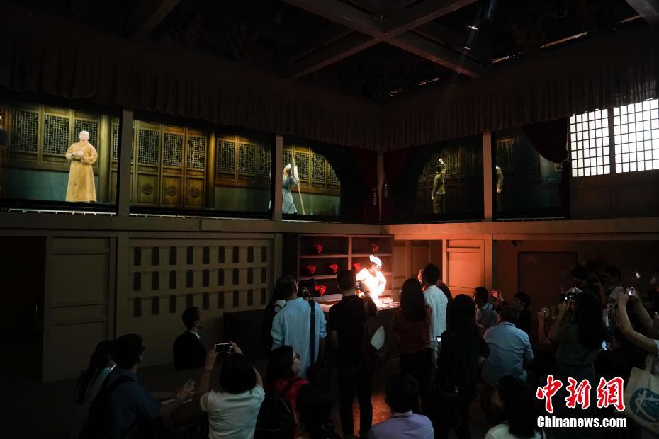 5月18日,国际博物馆日当天,高科技互动艺术展演《清明上河图3.0》于北京故宫博物院箭亭广场开幕。《清明上河图3.0》基于故宫博物院藏国宝级文物北宋张择端的《清明上河图》,通过挖掘原作的艺术神韵、文化内涵与历史风貌,融合8K超高清数字互动技术、4D动感影像等多种高科技互动艺术,构筑出真人与虚拟交织、人在画中的沉浸体验。展馆约1600平米,共有《清明上河图》巨幅互动长卷、孙羊店沉浸剧场、虹桥球幕影院三个展厅。中新社记者 杜洋 摄