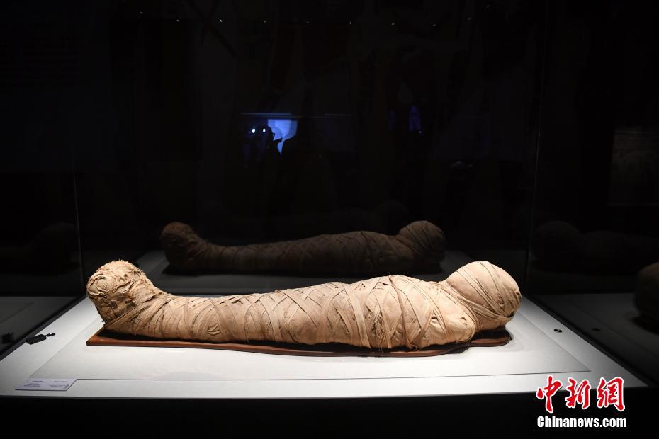 在安徽省博物馆古埃及木乃伊特展上展出的“木乃伊”,该木乃伊为成年女性。韩苏原 摄