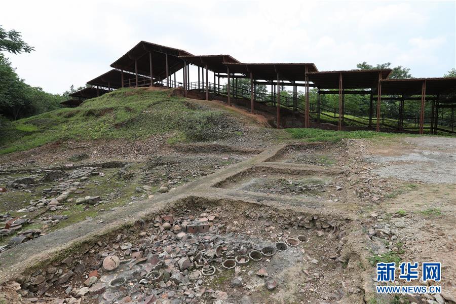 这是5月18日拍摄的位于邛窑考古遗址公园里的龙窑遗址。该遗址长达42米,宛如一条长龙卧于窑厂中心山体上,是迄今为止邛窑考古遗址公园发现的最完整的斜坡龙窑。