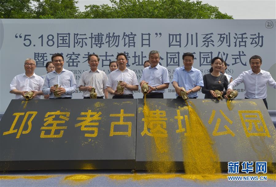 5月18日,嘉宾为邛窑考古遗址公园揭幕。新华社记者 江宏景 摄