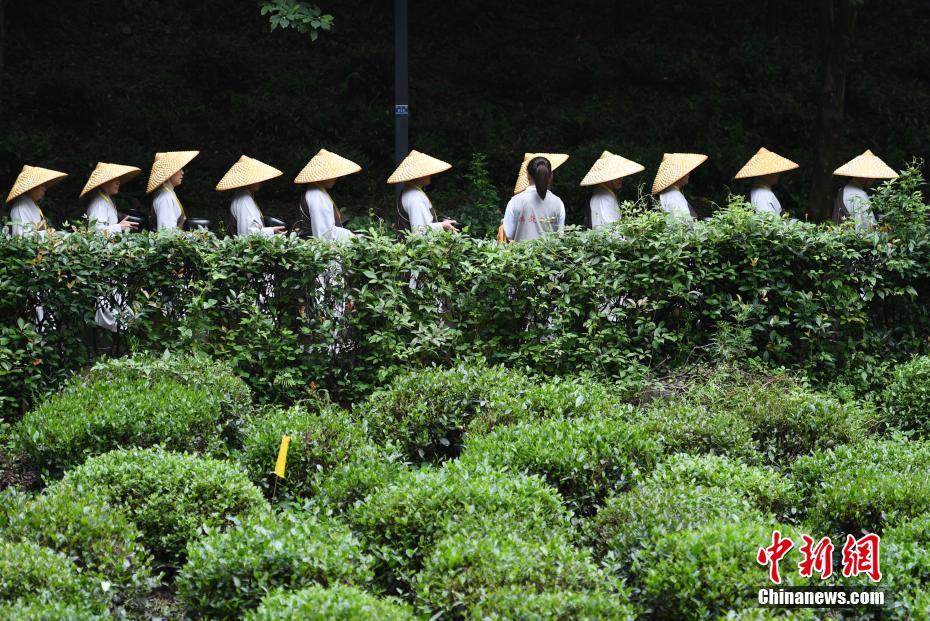 5月22日,众多僧人从龙井茶园走过。当日,系农历四月初八释迦牟尼佛诞辰吉日,浙江杭州市属各大寺院、杭州佛学院、灵隐寺等1000名僧人依照佛制,著衣持钵,头戴斗笠,进行托钵行脚活动。 中新社记者 王刚 摄