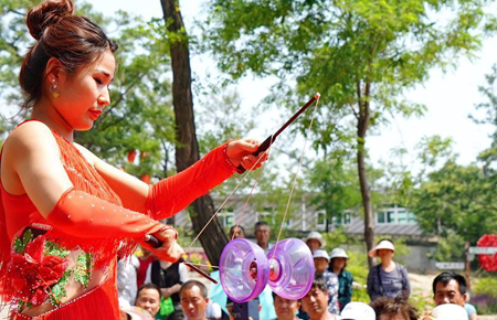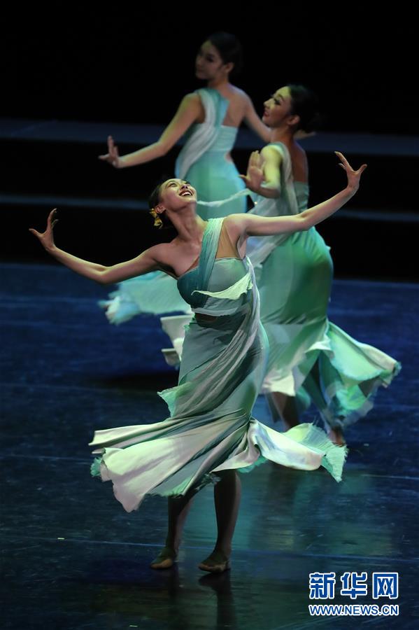 6月1日,北京舞蹈学院中国民族民间舞系的演员在表演舞蹈《水色》。