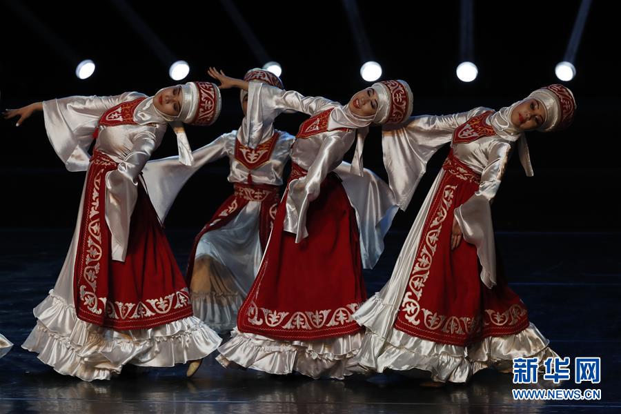 6月1日,吉尔吉斯斯坦“谢梅捷伊”国立舞蹈团的演员在表演舞蹈《游牧民族的迁徙》。新华社记者 沈伯韩 摄