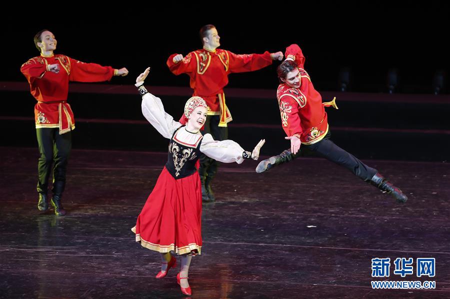 6月1日,俄罗斯莫斯科国立模范格热利舞蹈团的演员在表演舞蹈《巴雷尼亚舞》。新华社记者 沈伯韩 摄