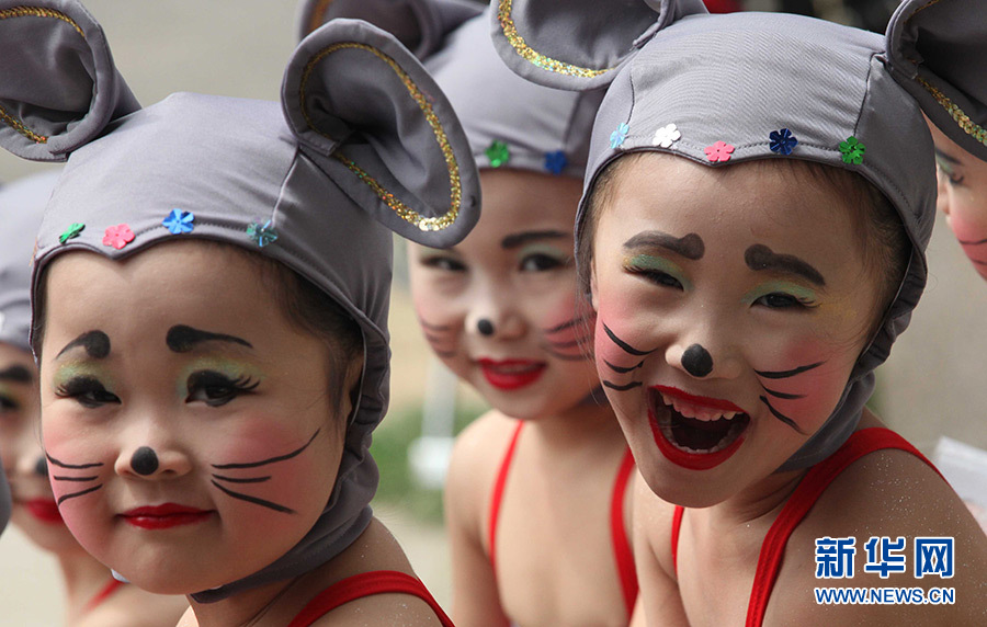 江苏徐州的孩子们准备表演儿童节文艺节目(2011年5月31日摄)。新华社发(雍君 摄)