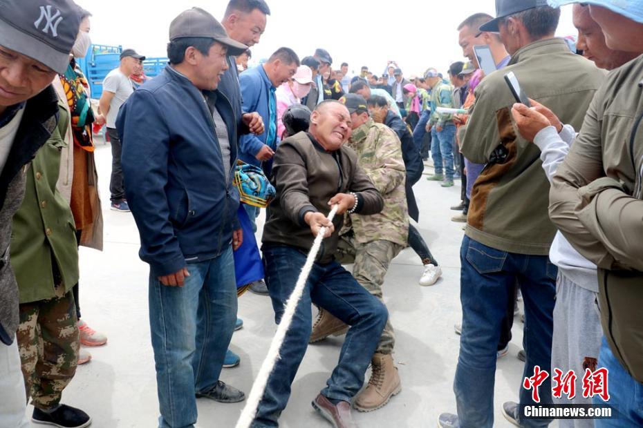 甘肃肃北县牧民夏日祭敖包 赛马、拔河欢乐无穷