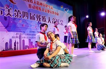 这是6月6日拍摄的第十届海峡论坛开幕前的文艺演出现场,两岸嘉宾联手演奏《黄河-第一乐章“黄河船夫曲”》。